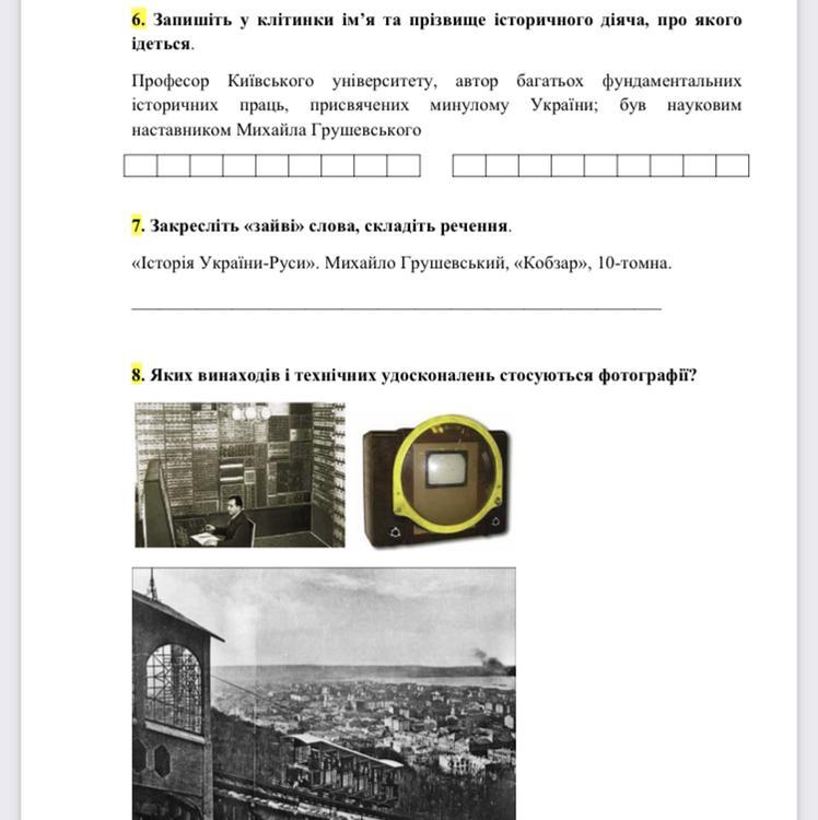 7. Закреслити - "Кобзар", речення - 10-томмна "Історія України - Руси" була написана Михайлом Грушевським