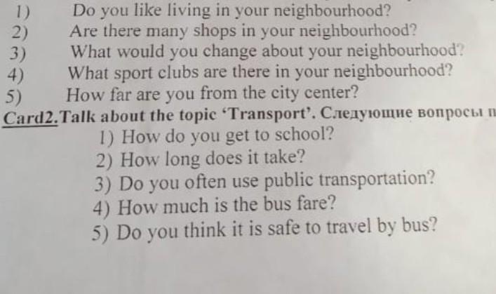 1. i get to school by bus 2. it takes 30 minutes 3. yes, i take the subwat sometimes 4. 15 rubles 5. yes, it all depends on the driver