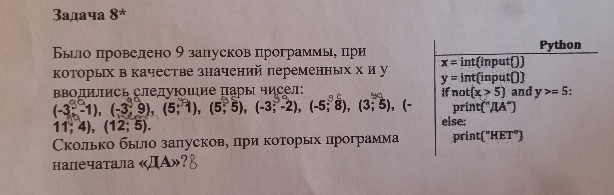 2 раза по коду понятно что если если введённые 2 числа оба больше пяти то тогда да если нет то нет