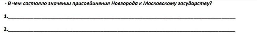 Ответ:захватов Новгород и уничтожив часть новгородских бояр,Москва не только получила с в свое распоряжение довольно большие земли ликвидировала возможность мятежа,но и исключила возможность перехода земель под власть Литовского короля.