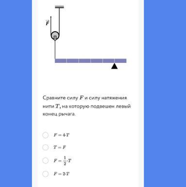 Сравните силу F и силу натяжения нити Т, на которую подвешен левый конец рычага;