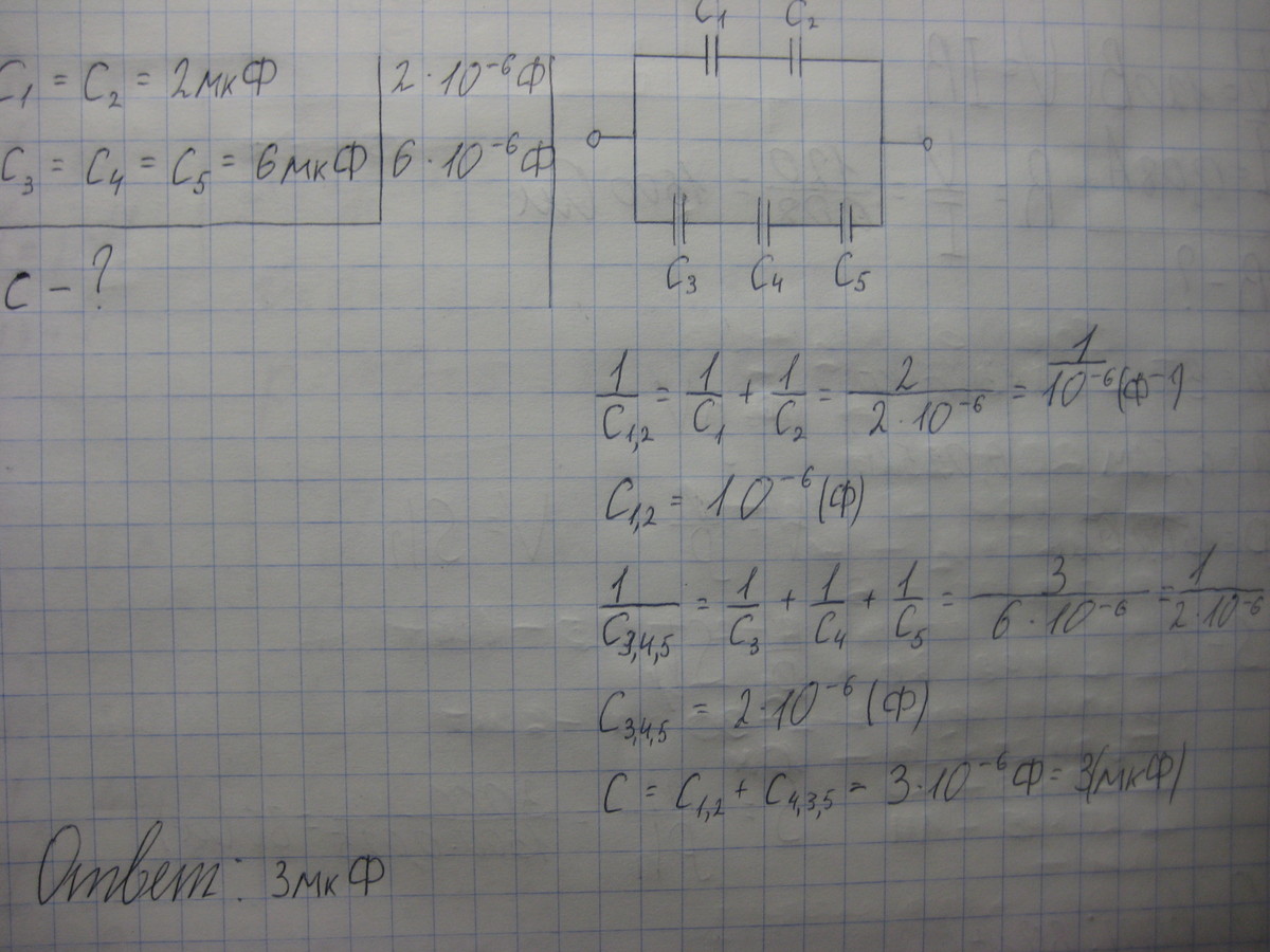 Итого Собщ. = Собщ.1,2 + Собщ.3,4,5 = 1+2 = 3 мкФ.