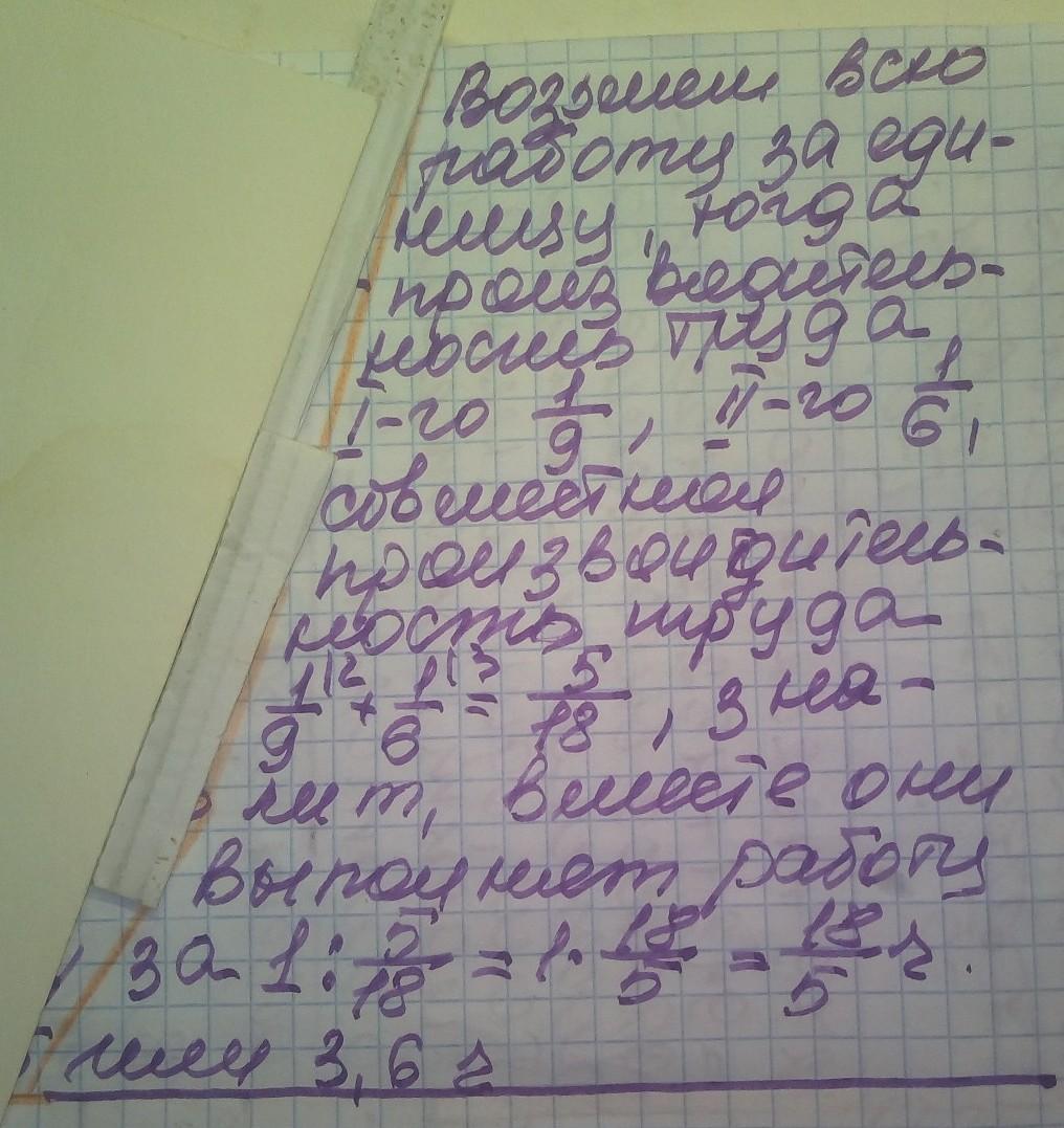 Один мастер может выполнить заказ за 9 ч.,а второй за 6ч.За сколько они выполнят работу работая вместе?