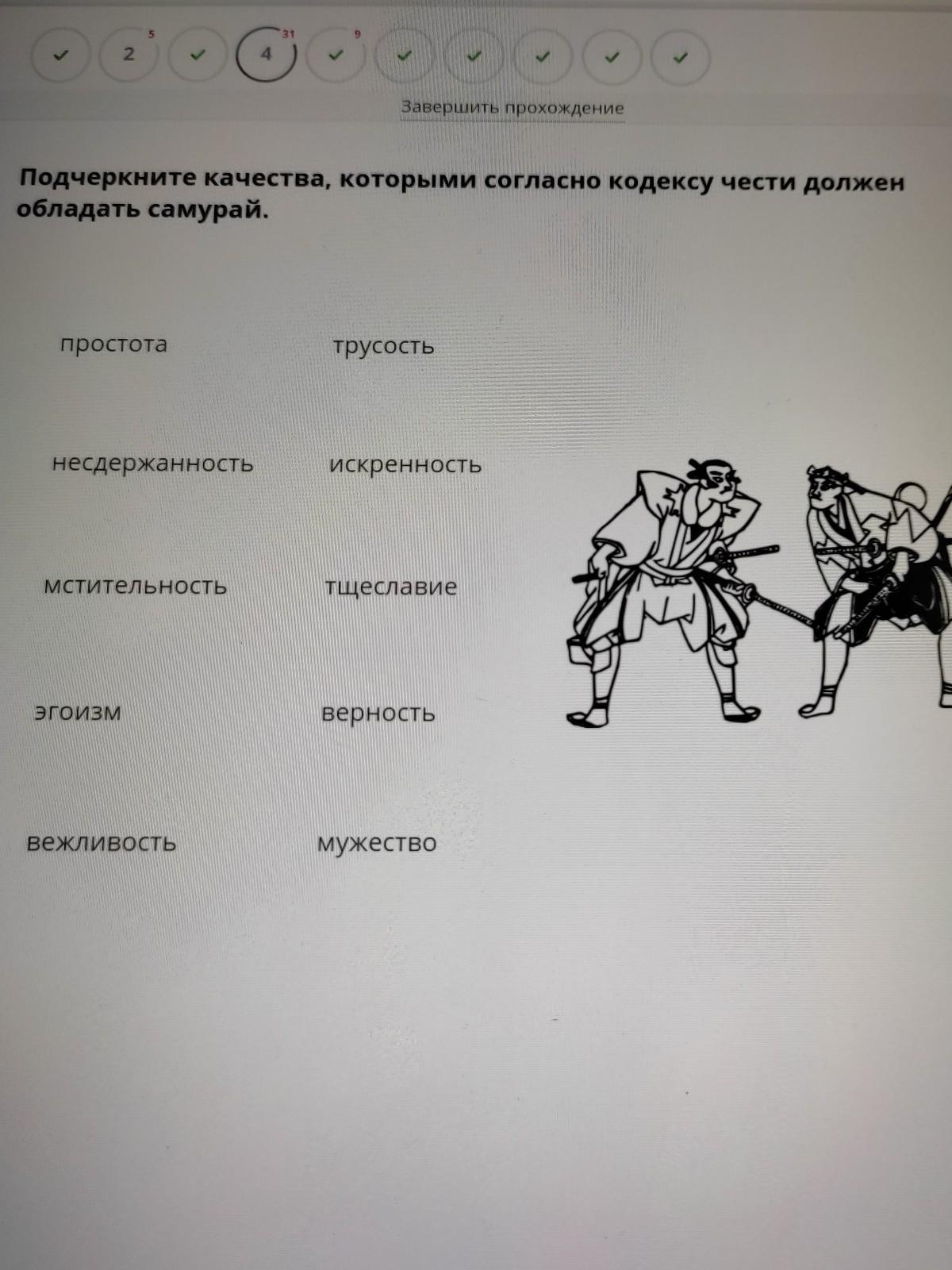 Качества, которыми согласно кодексу чести должен обладать самурай. Сроооочнооо дам 15 баллов