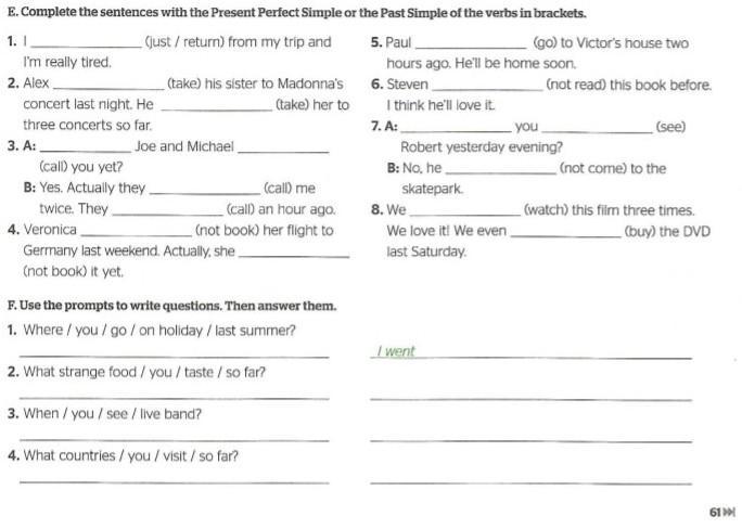 1 Where did you go on holiday lest summer?