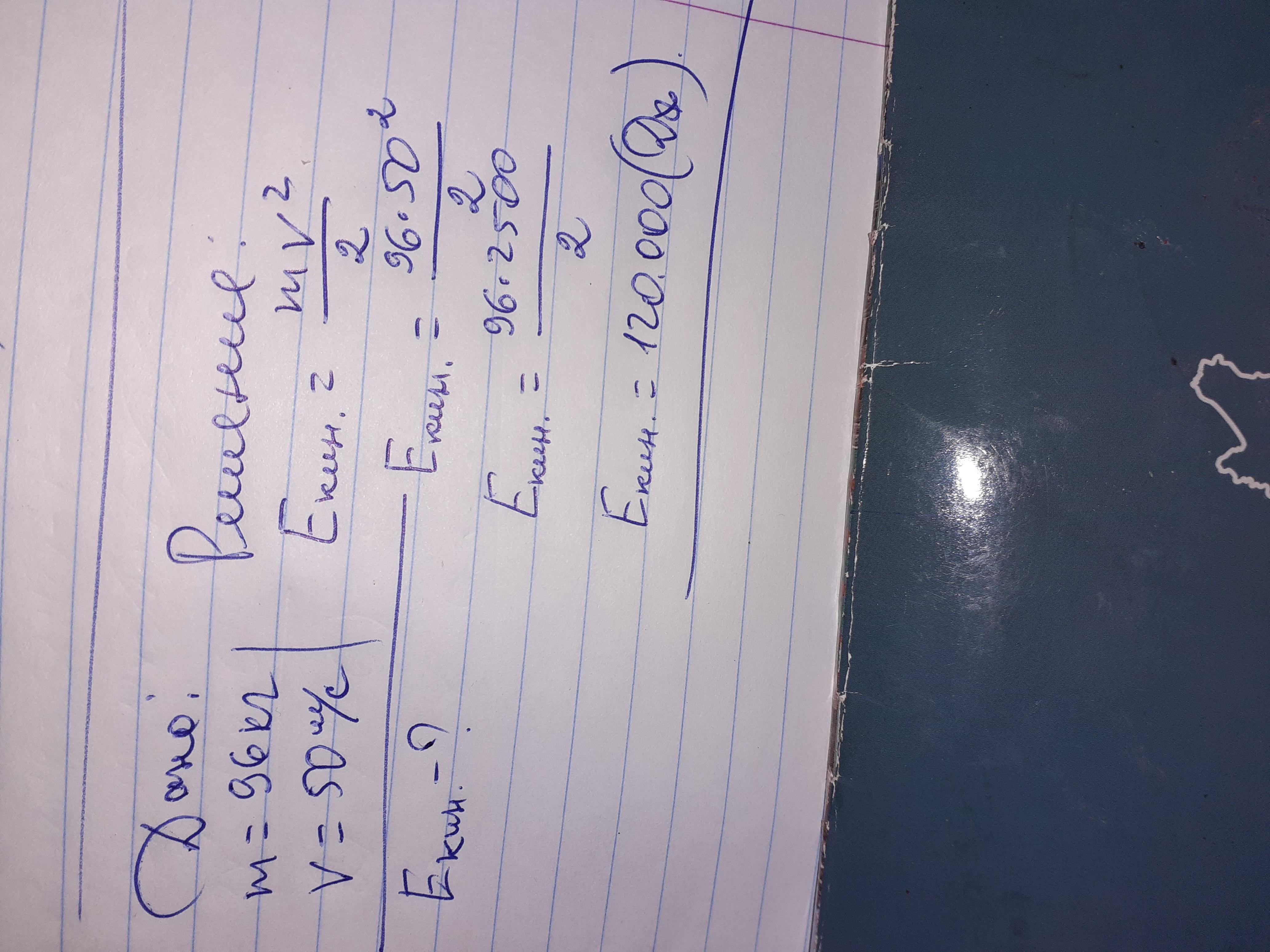 Ответ: кинетическая энергия равна 0,5*96*50=2400 Дж.