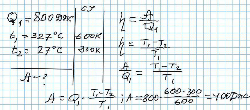 выполняет машина, если температура отопителя идеальной тепловой машины 327 °С, а