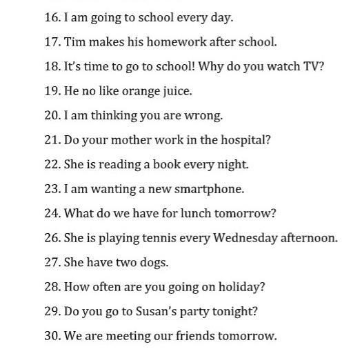 18) It's time to go to school! Why do you watch TV? (do (you) watch —> are (you) watching)