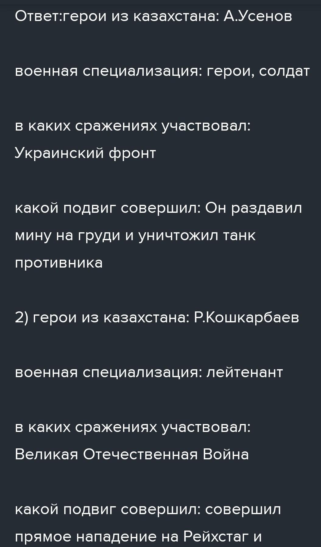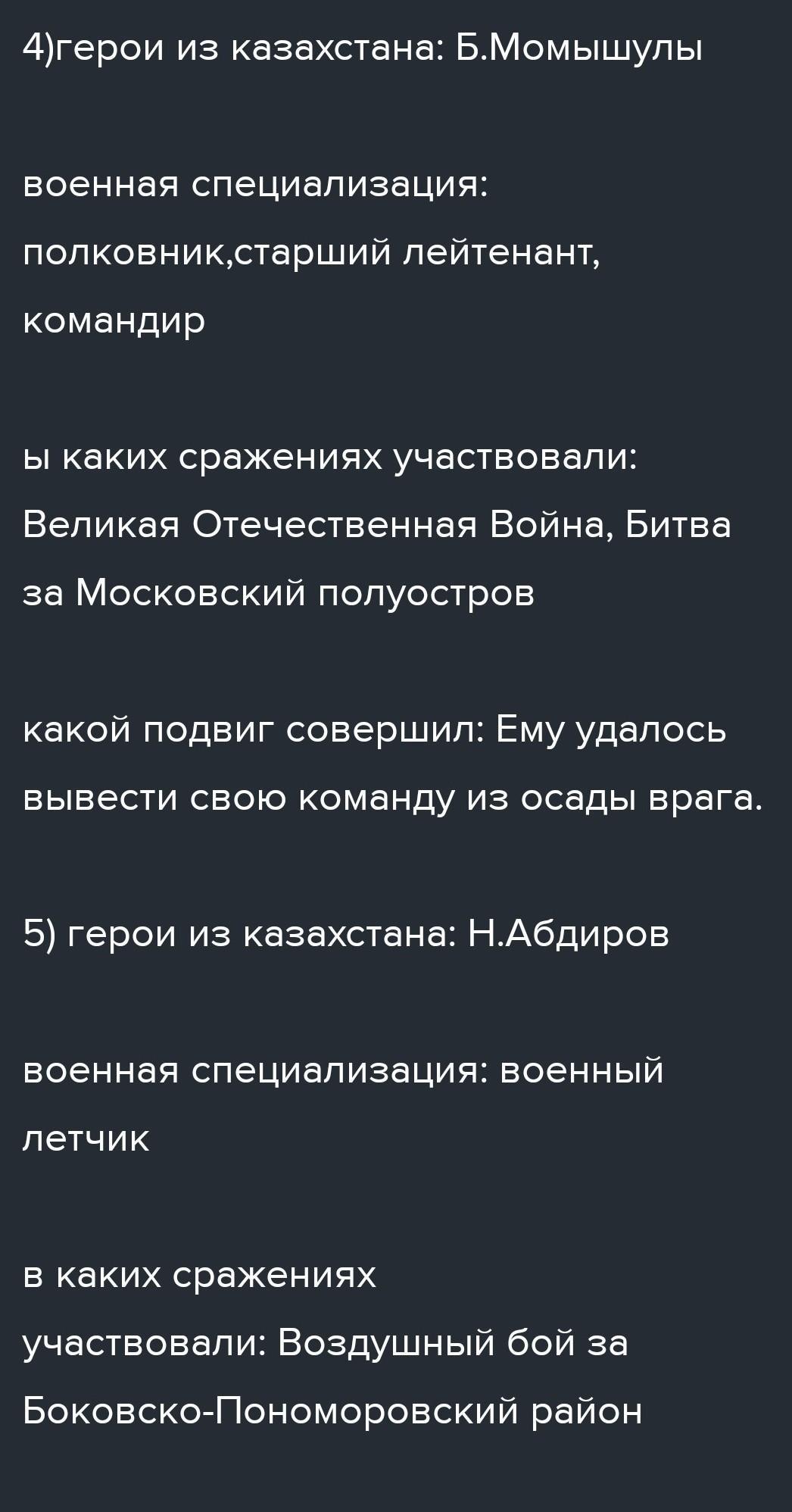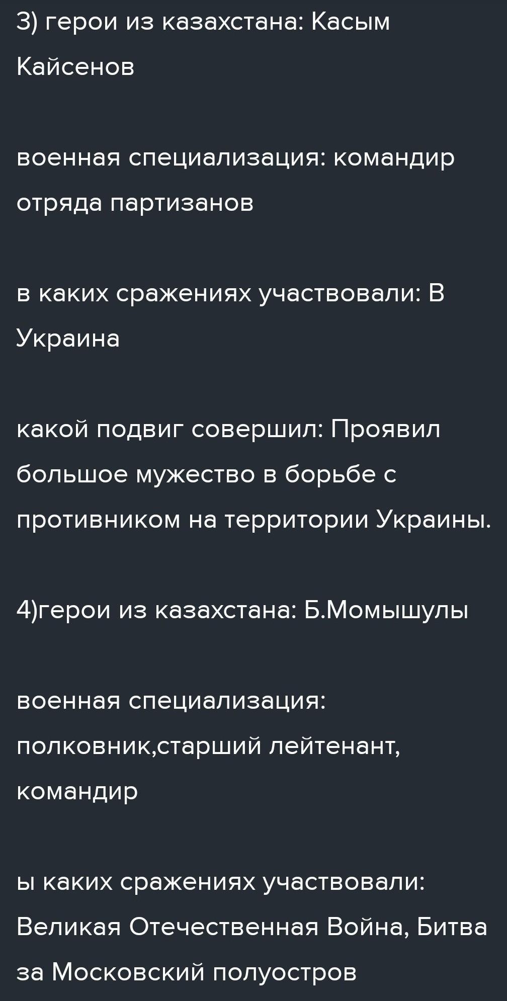 а вывод: Казахстанцы внесли огромный вклад в ВОВ(Великую Отечественную войну).