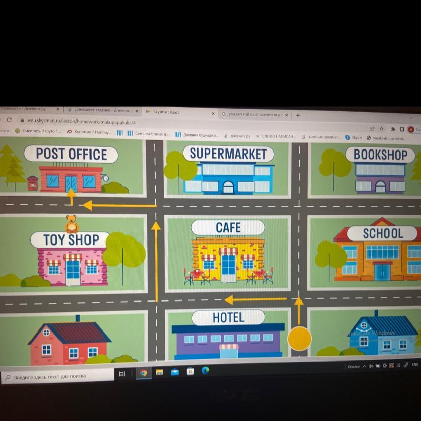 Sarah wants to send a letter to her granny. She is between the hotel and a blue