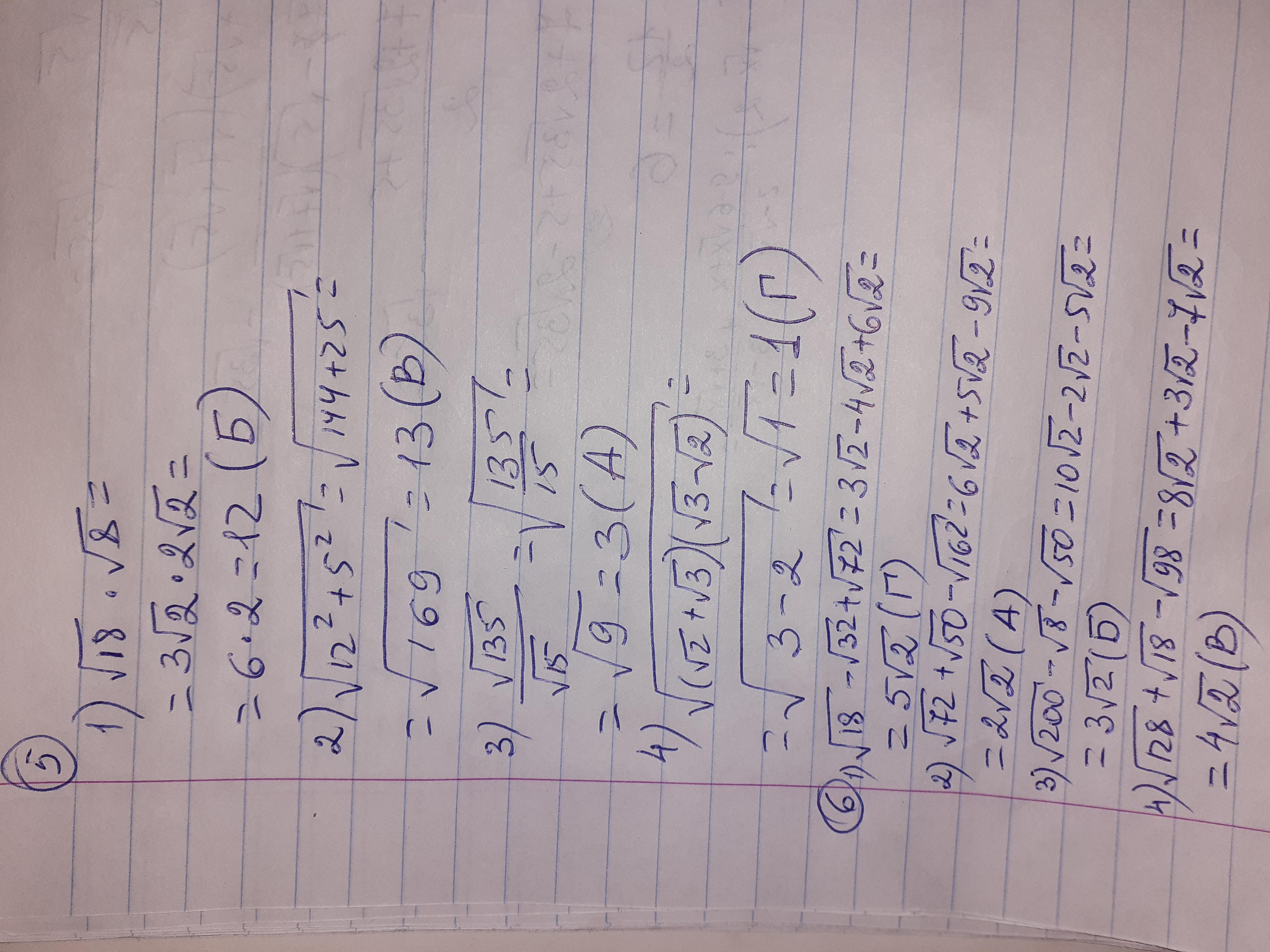 4. √((√2 + √3)(√3 - √2) = √3² - √2² = 3 - 2 = 1 - Г.
