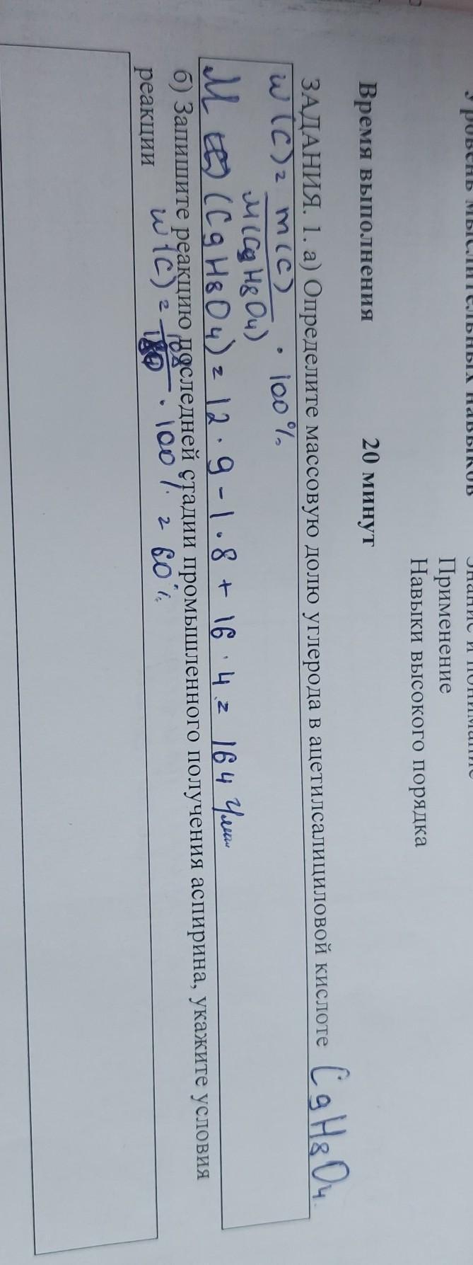1)определите массовую долю углерода в ацетилсалициловой кислоте