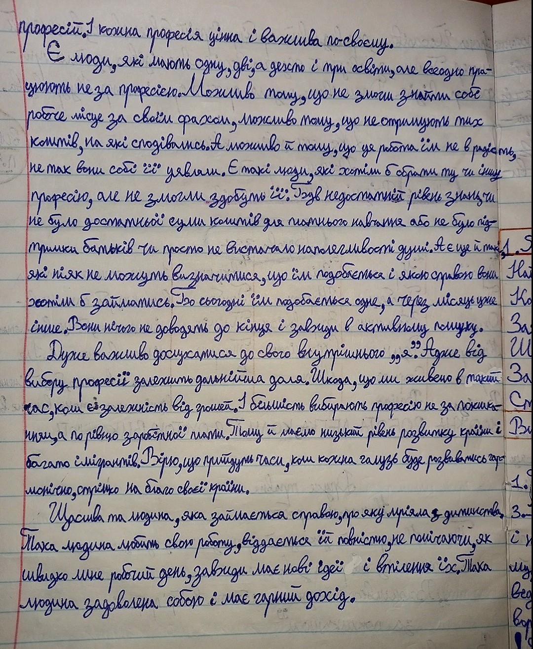 Я не знаю,чи це правильно.Але я би написала так.Твір почала би з < Все своє життя людина працює і шукає своє покликання,щоб існувати.Існує безліч професій. ... і там далі на листочку.Надіюсь,що правильно.Коми і інші знаки поставила правильно.