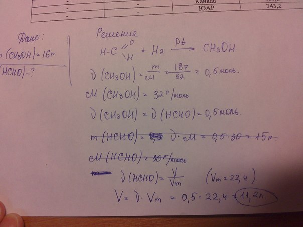 Какой объем формальдегида (н. у.) необходимо подвергнуть гидрированию для получения 16 г метилового спирта? Решить нужно через моли!