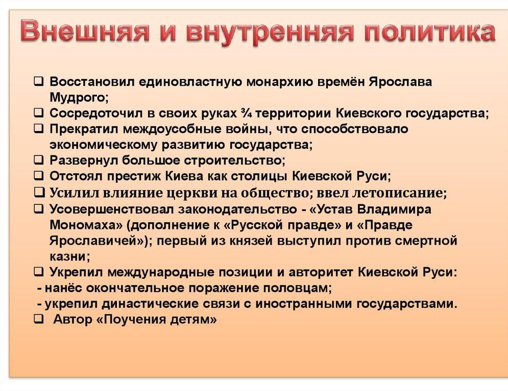 Внутренняя политика Владимира Мономаха