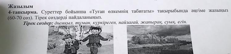 Туған өлкемнің табиғаты тамаша ғой. Жапырақтар желмен ұшып жүреді . Күн күркіреп , найзағай ұрады. Тұман болып , жаңбыр жауғанға не жетсің.Әркім өз өлкесін жақсы көреді.Сол өлкесінің табиғатымен мақтанады.Менің өлкеме жететін өлке жоқ дейді. Дымқыл жерде егін егіліп жатады.Күн суытқанда яғни дала суық болғанда ойнаймыз.Өз өлкеміздің тамаша табиғатында.