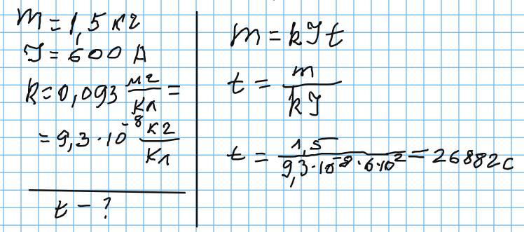 ДАЮ 100 БАЛОВ ПОМОГИТЕ !Скільки часу тривав електроліз, якщо при силі струму 600 А на катоді виділилося 1,5 кг алюмінію ( з дано если можно )