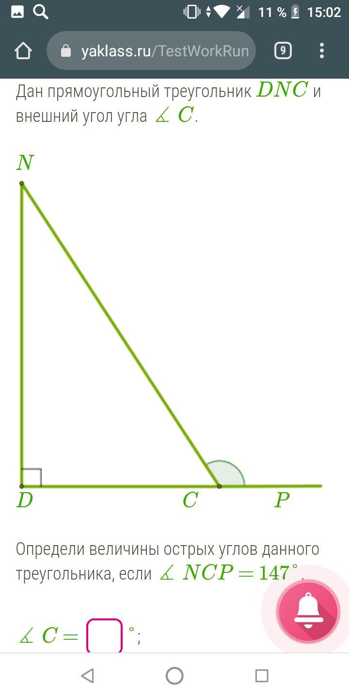 Угол N = 57°