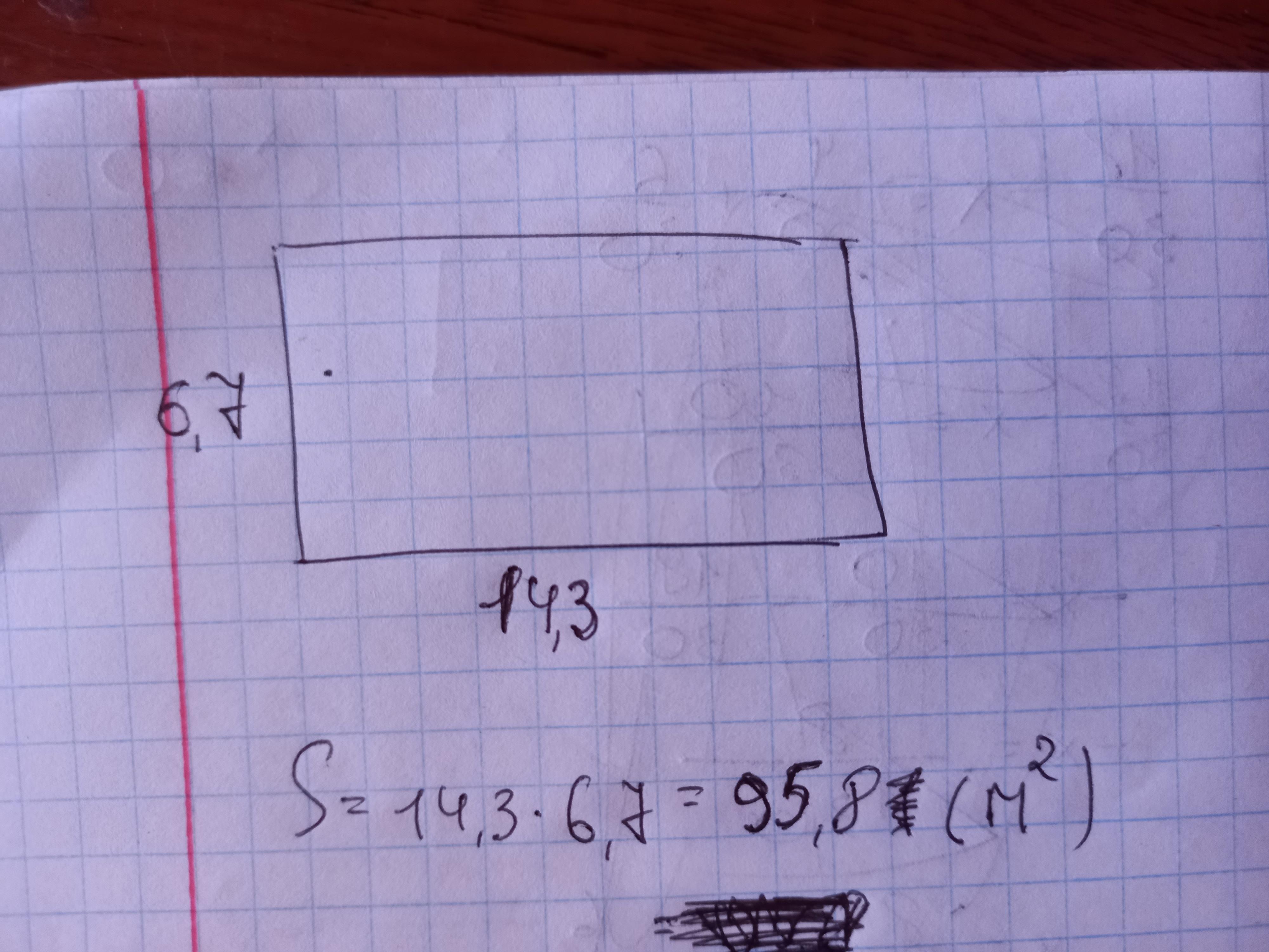 Игровая площадка прямоуголной формы имеет размеры 14,3м к 6,7 .Найдите ее площадь (ответы округлить едениц