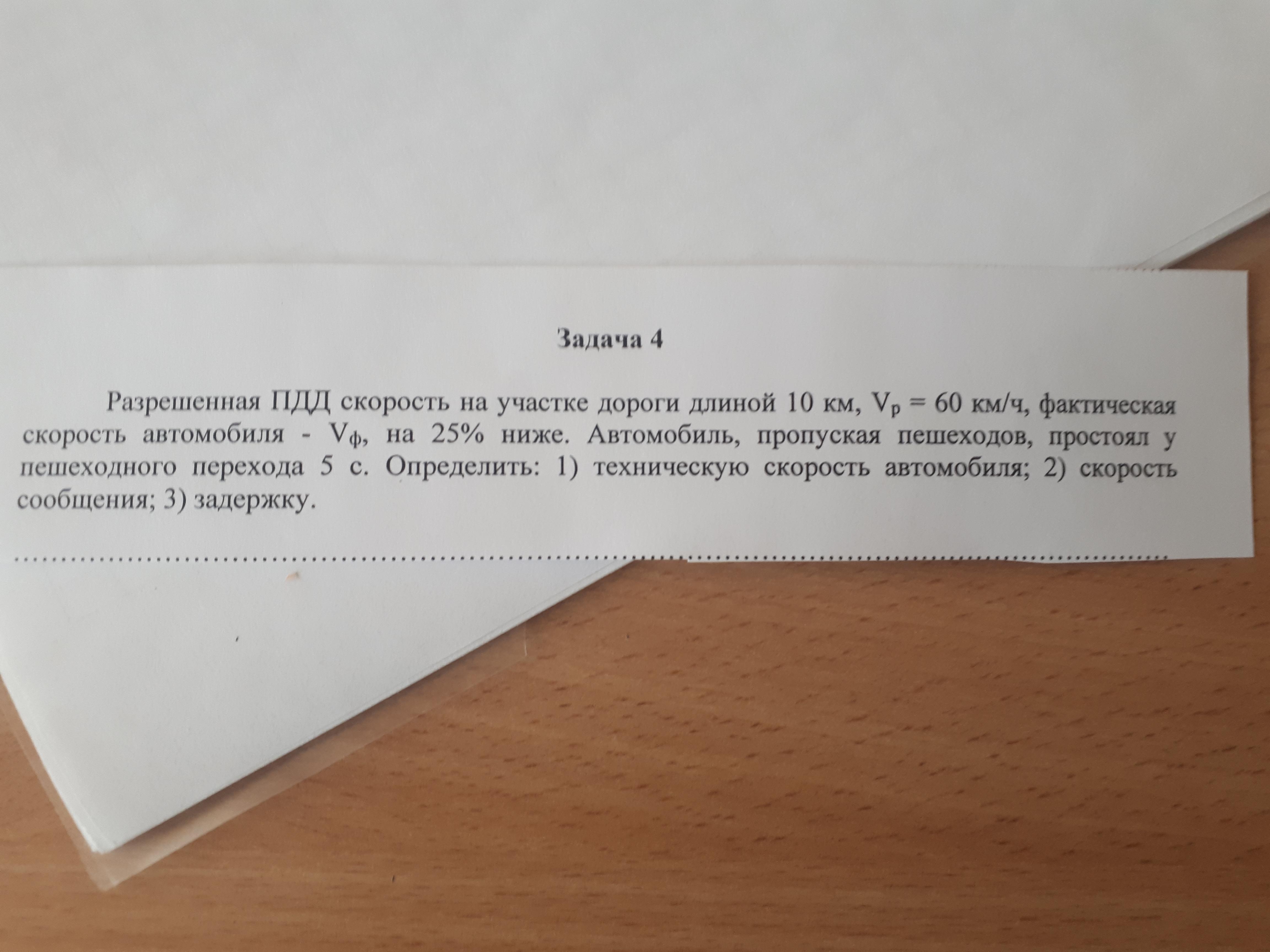 4 задача разрешенная скорость на участке дороги 10 км Vp 60км фактическая скорость автомобиля Vф на 25% ниже. Автомобиль пропуская пешеходов простоял у пешеходного перехода 5 с определить 1) техническую скорость сообщения 2) скорость автомобиля 3)задержку.