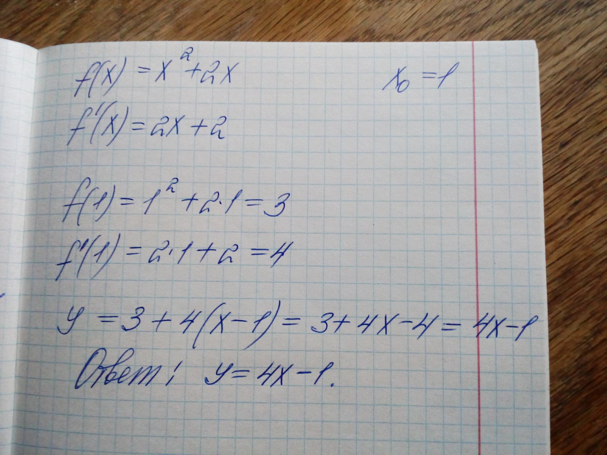 Помогите пожалуйста!!! Составьте уравнение касательной к графику функции f(x)=x^2+2x в точке с абсциссой x0=1