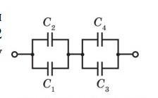 Визначити ємність батареї конденсаторів (див. рисунок), Якщо С1=1мкФ, С2=2мкФ , С3=3мкФ, С4=5 мкФ