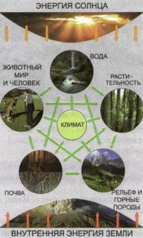 Все компоненты природы влияют друг на друга и тесно связаны между собой.Если по каким-либо причинам изменяется хотя бы один компонент, за ним изменится и весь природный комплекс.