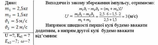 1. Дві кулі масами 2,5 кг, і 1,5 кг рухаються назустріч одна одній із швидкостями 6 M / C * i * 2M с. Визначити: 1) швидкість куль після удару; 2) кінетичну енергію куль до і після удару; 3) долю кінетичної енергії кулі, яка перетворилася у внутрішню енергію. Удар вважати прямим і непружним.