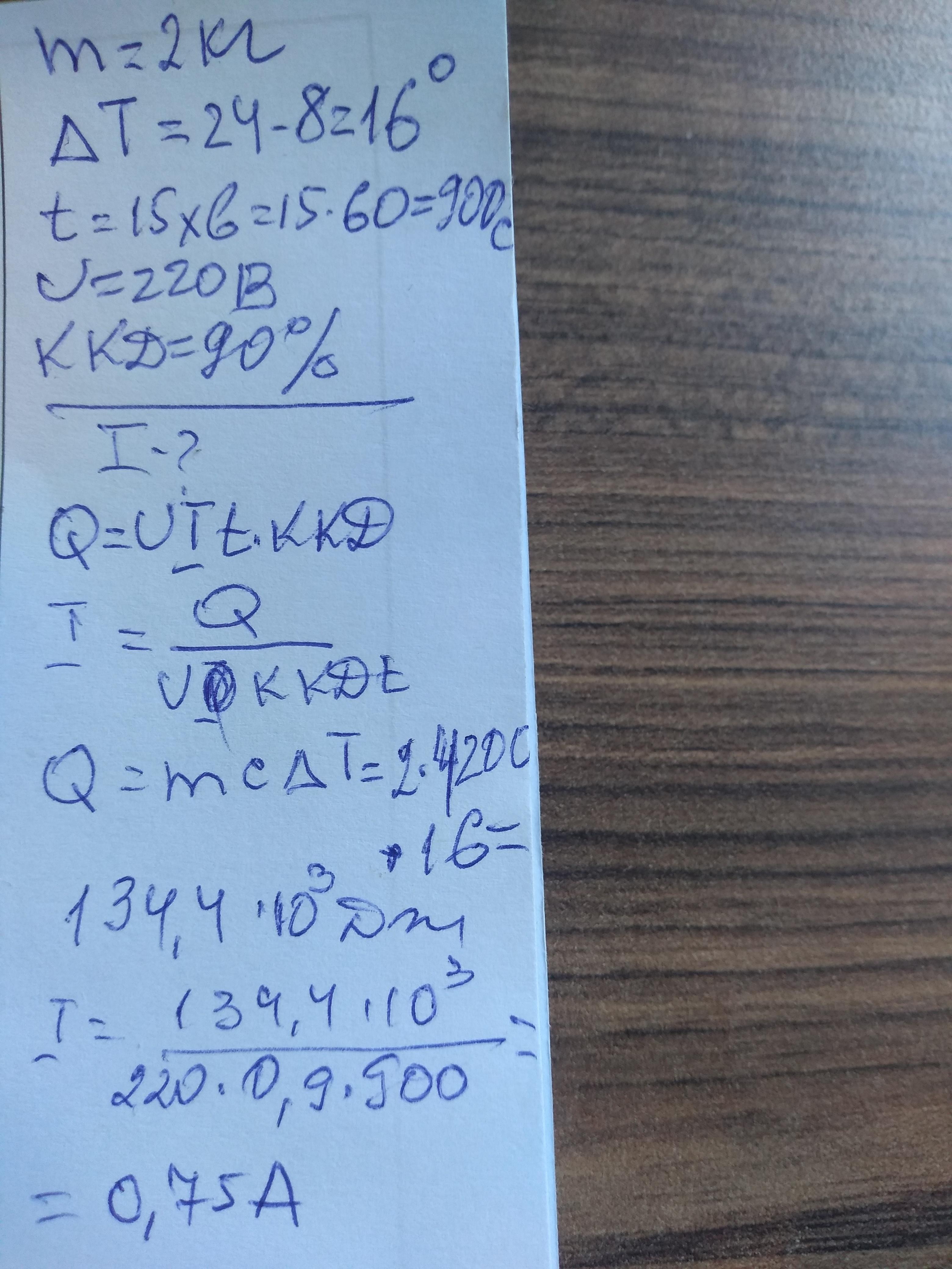 СРОЧНО ДАЮ 80 БАЛЛОВ ПОЖАЛУЙСТА С ДАНО ОЧЕНЬ СРОЧНО 8. Яка сила струму в нагрівальному елементі автоматичної пральної машини, якщо вона підігріває 2 кг води від 24 до 8°C за 15 хв? Напруга в мережі 220 В, ККД нагрівника 90 %.