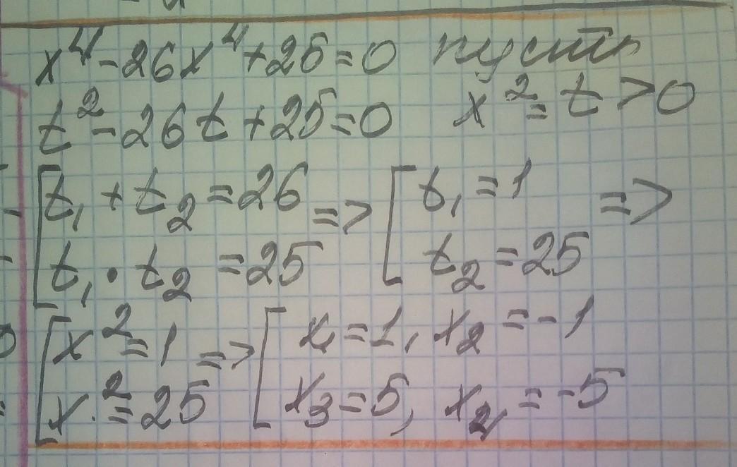 х*4 – 26х*2 + 25 = 0