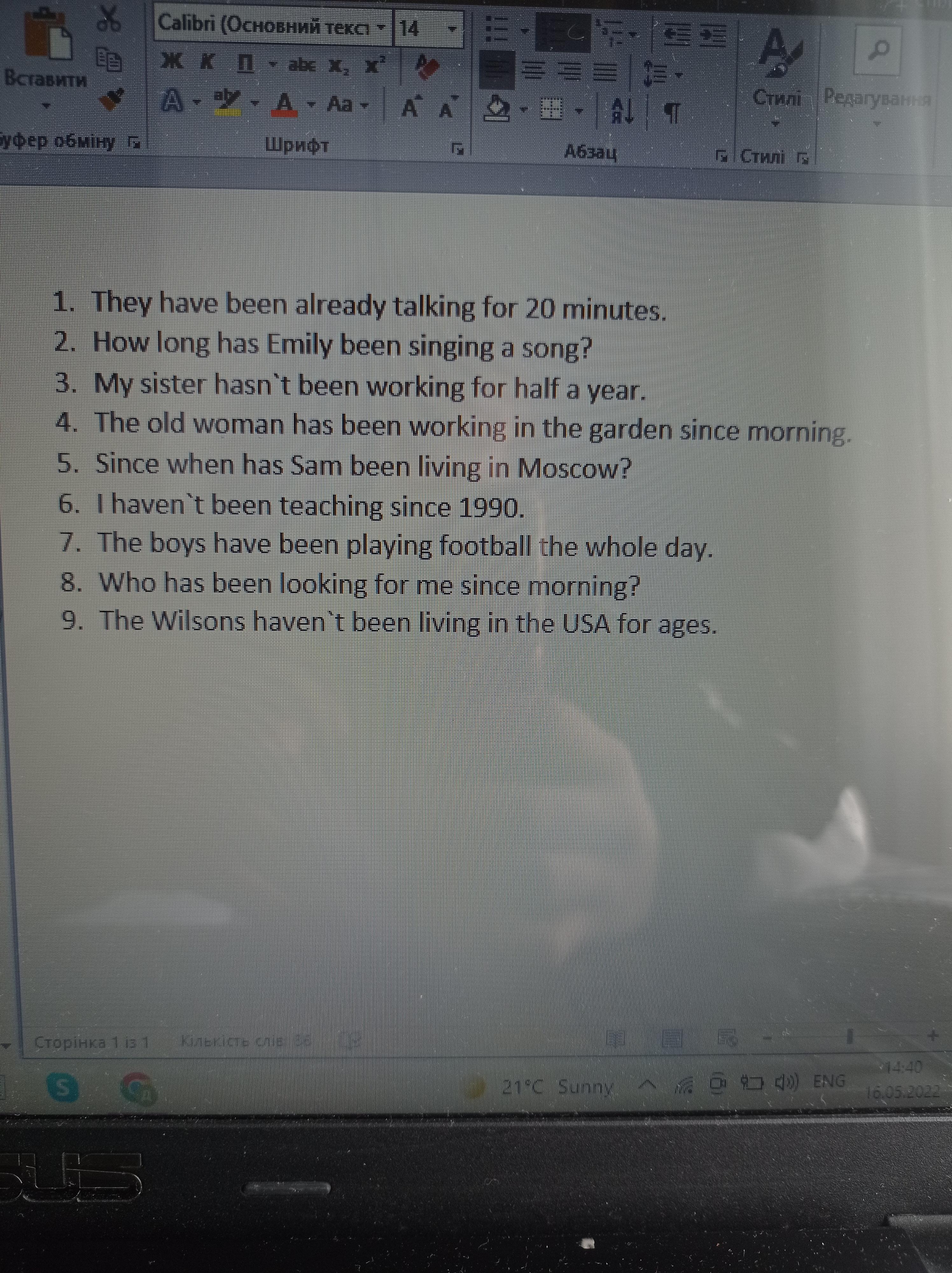 Task 4. Составьте предложения из данных слов в Present Perfect Progressive Tense.