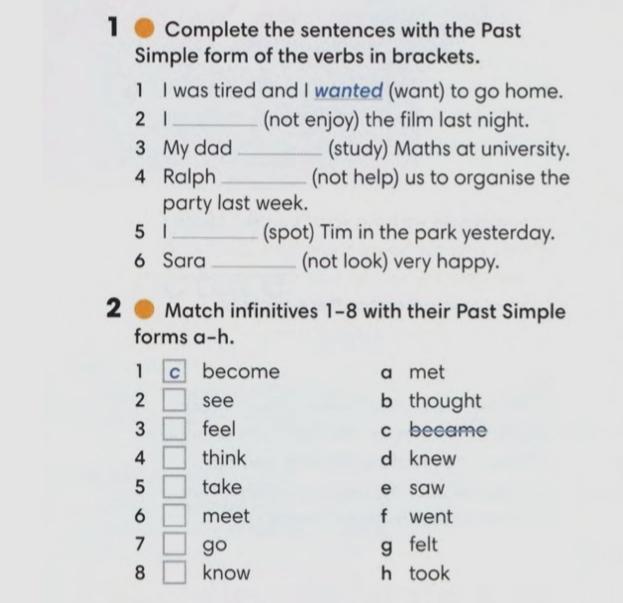 два задания, 1 привести в форму Паст Симпл, 2 элементарно, первую и вторую форму соотнести. Заранее благодарю!!