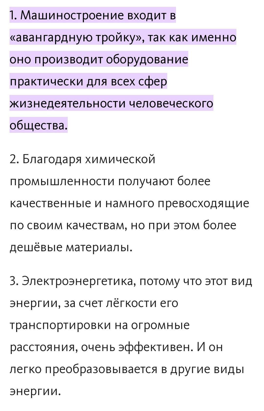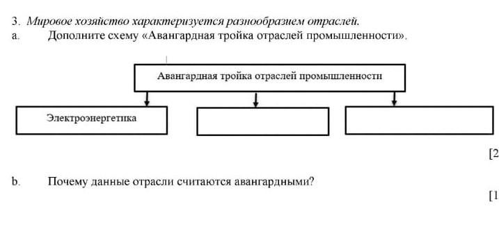 3. Мировое хозяйство характеризуется разнообразием отраслей. Дополните схему «Авангардная тройка отраслей промышленности». а, Авангардная тройка отраслей промышленности Электроэнергетика b. Почему данные отрасли считаются авангардными?