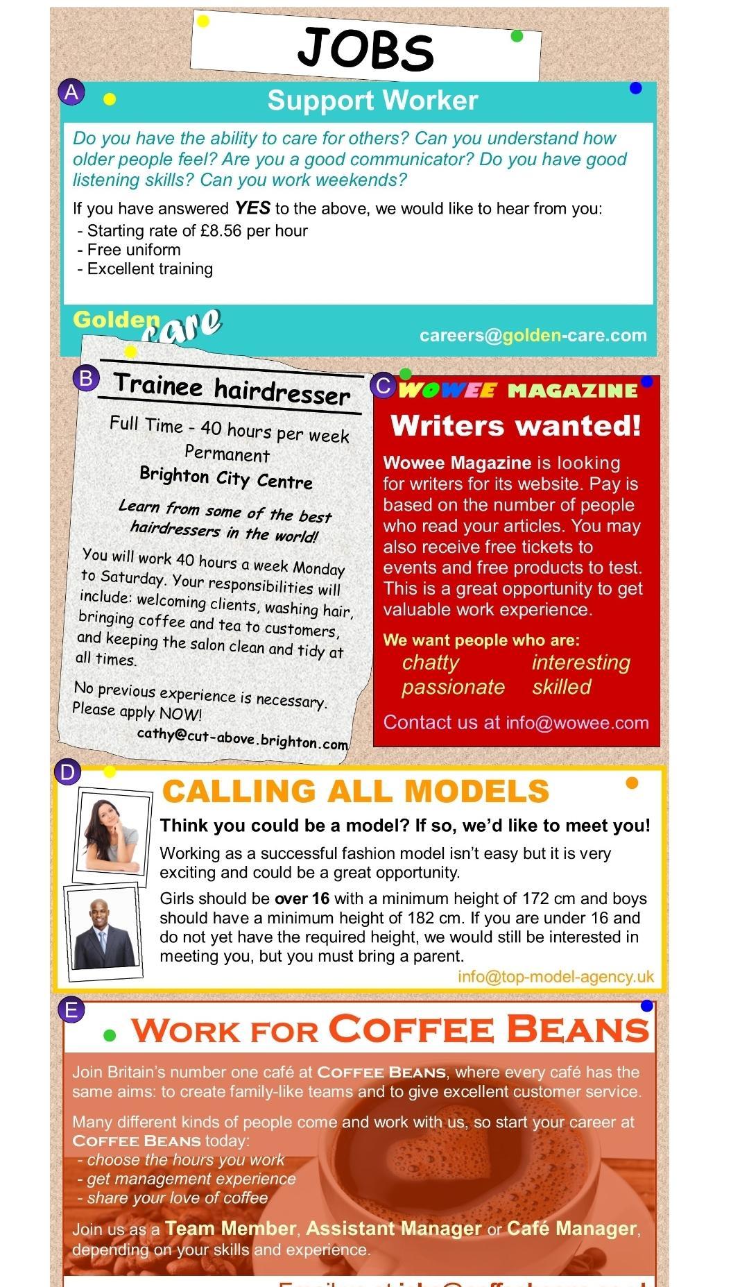 4. Job requires physical contact with customers.- B: Trainee hairdresser