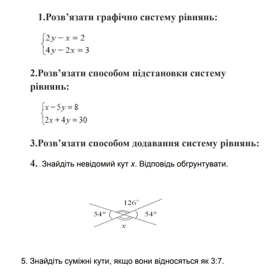 5) 3х+7х=180; х=18; 3х=54; 7х=126;