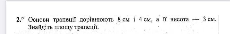 Сначала складываем основы трапеции потом что вышло делим на 2 а потом множим на высоту