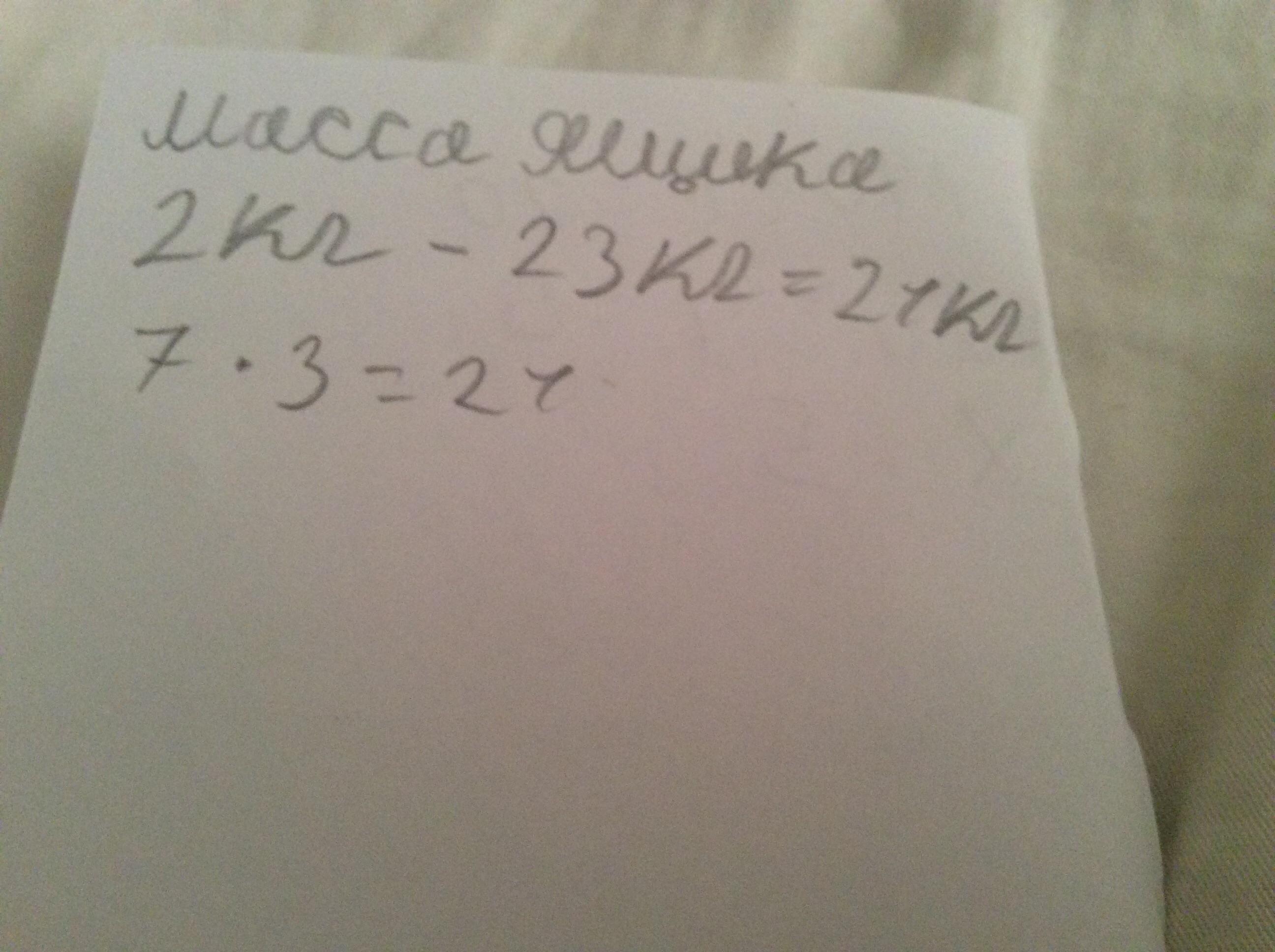 в ящик масса которого 2 кг ставят банки с соком. одна такая банка с соком весит 7 кг. сколько банок можно поставить в ящик если масса ящика с банками не должна превышать 23 кг