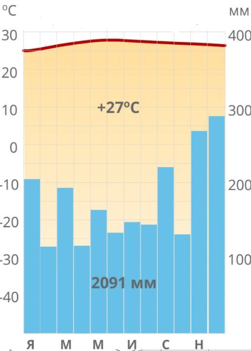 Явно видно, что это экваториальный пояс, т. к. в течении всего года температура 27°С. Экватору соответствует точка под цифрой 3.