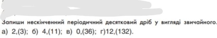 Между целой частью и периодом нет чисел то добавляем в знаменатель столько девяток, сколько чисел в периоде: