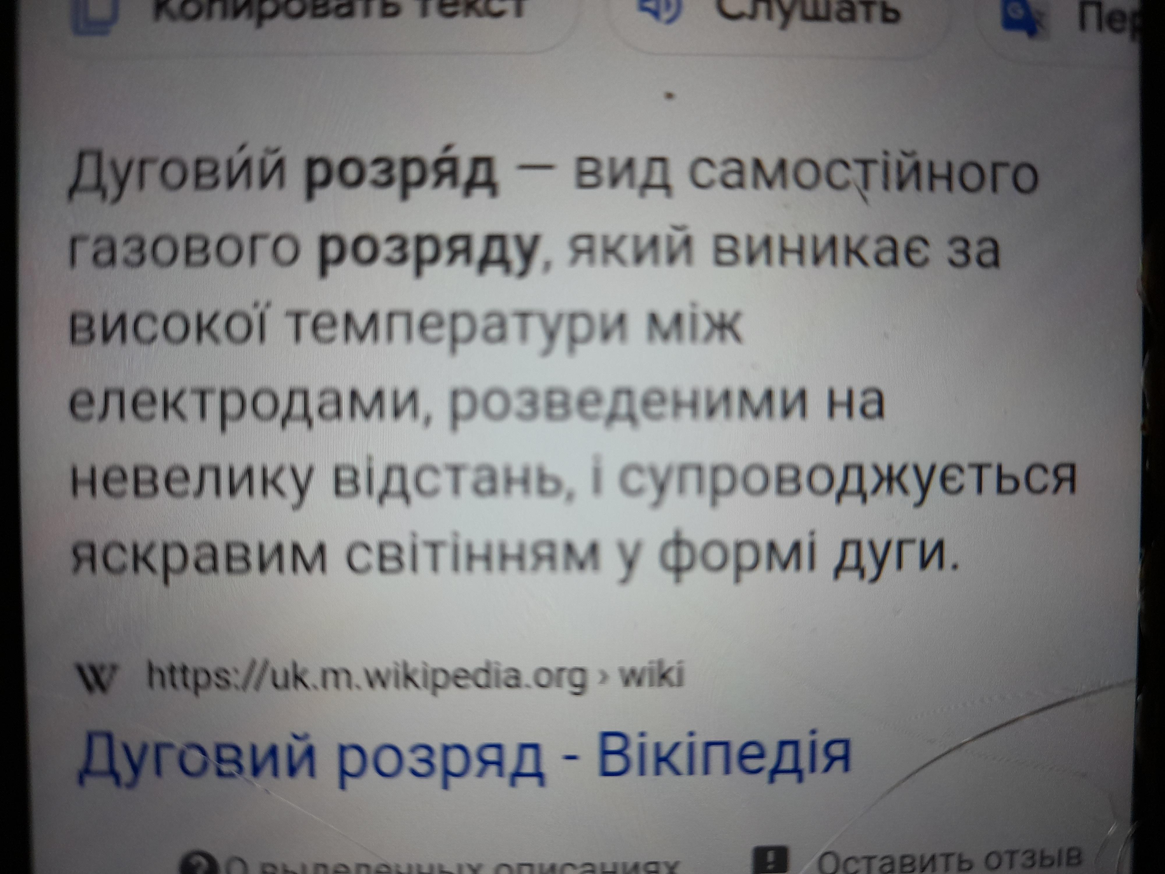 Відповідь:Дугови́й розря́д — вид самостійного газового розряду, який виникає за високої температури між електродами, розведеними на невелику відстань, і супроводжується яскравим світінням у формі дуги.