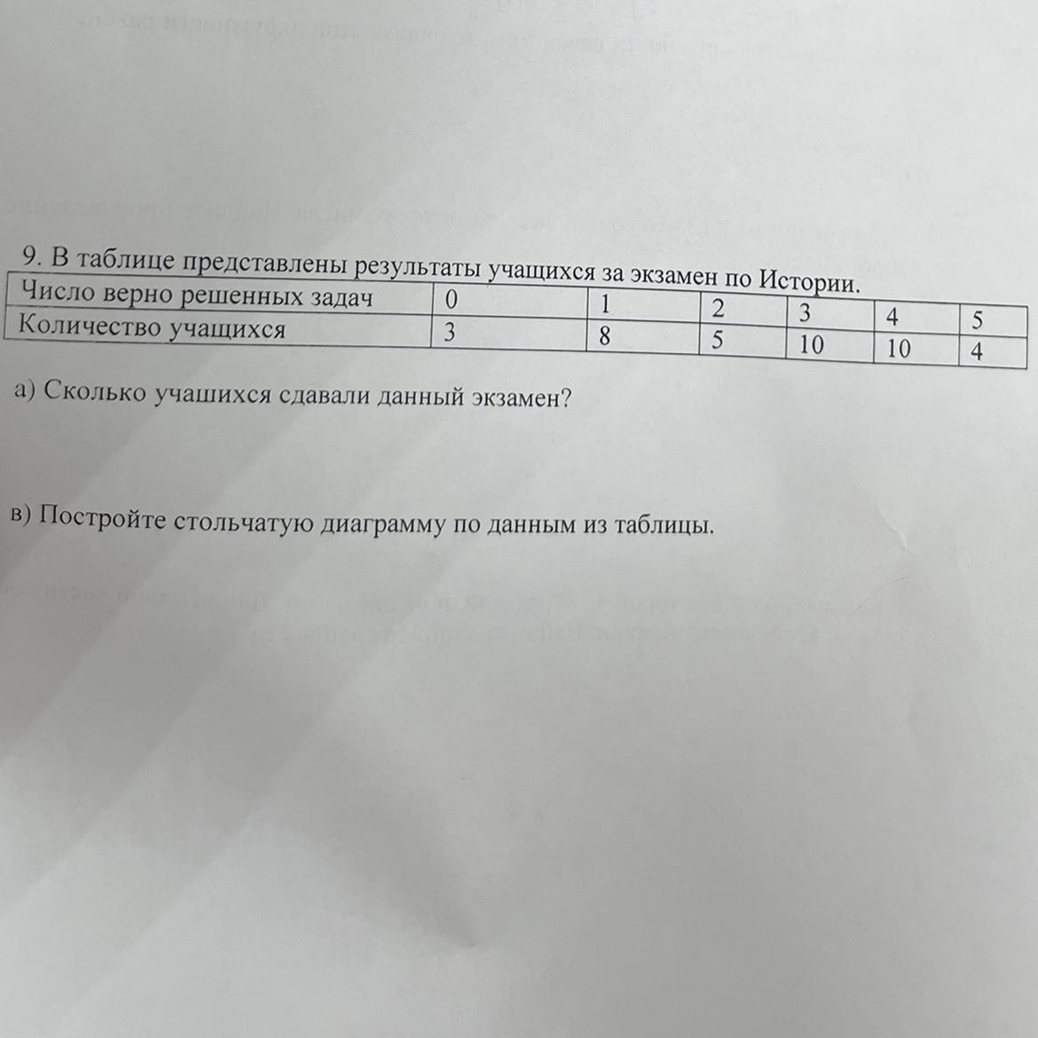 9. В таблице представлены результаты учащихся за экзамен по Истории.