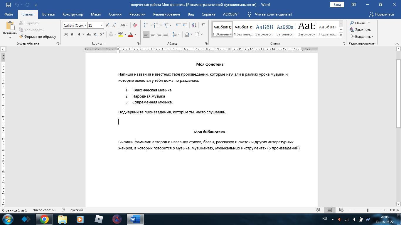 Напиши названия известных тебе произведений, которые изучали в рамках урока музыки и которые имеются у тебя дома по разделам: