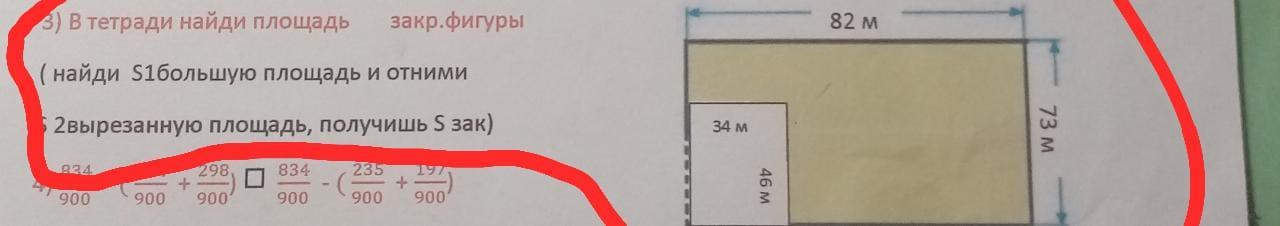 1) 82 × 73 = 5986 (м²) - площадь большего прямоугольника