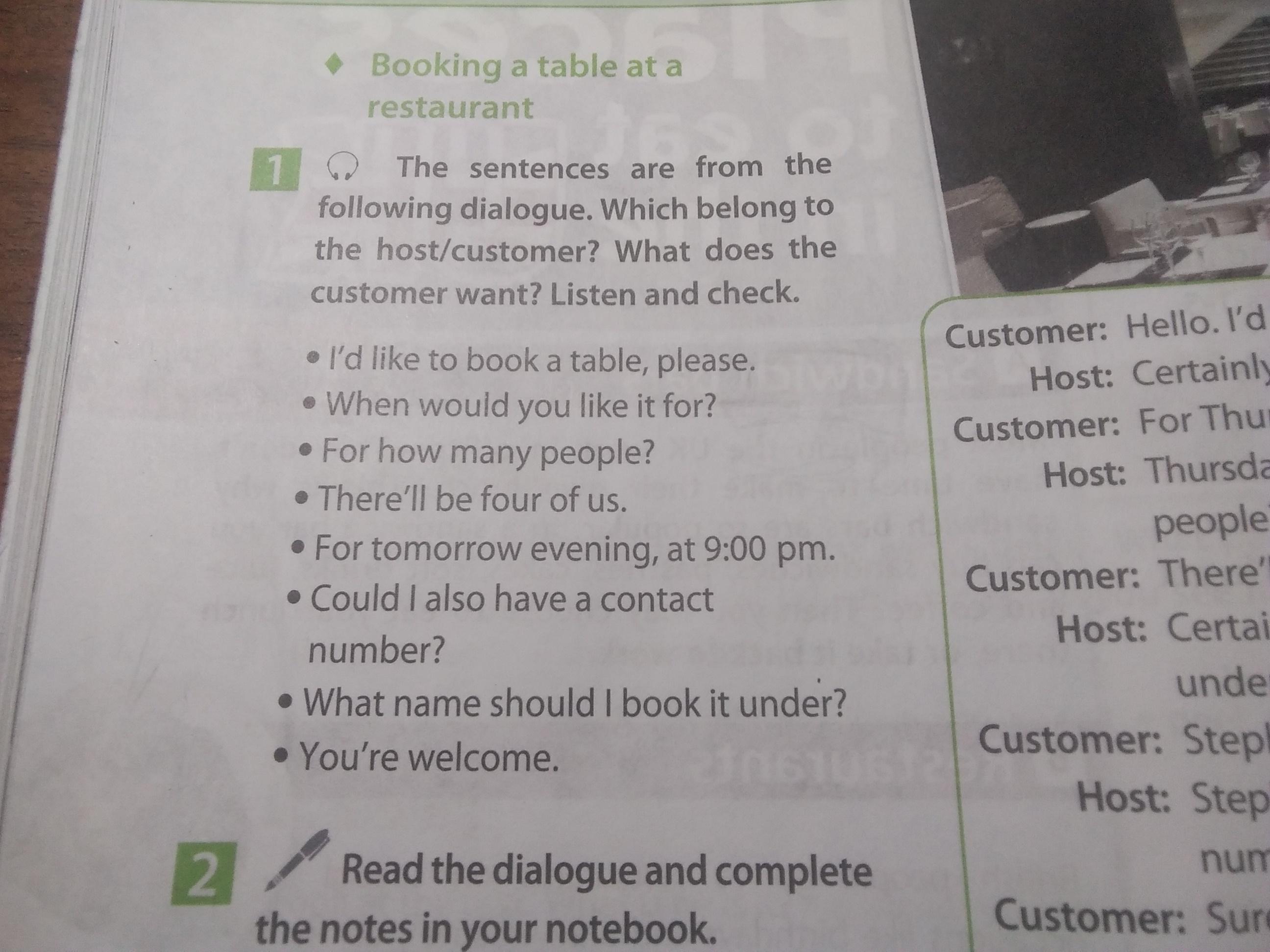 Ответ: А: hello! i'd like to this book a table, please.