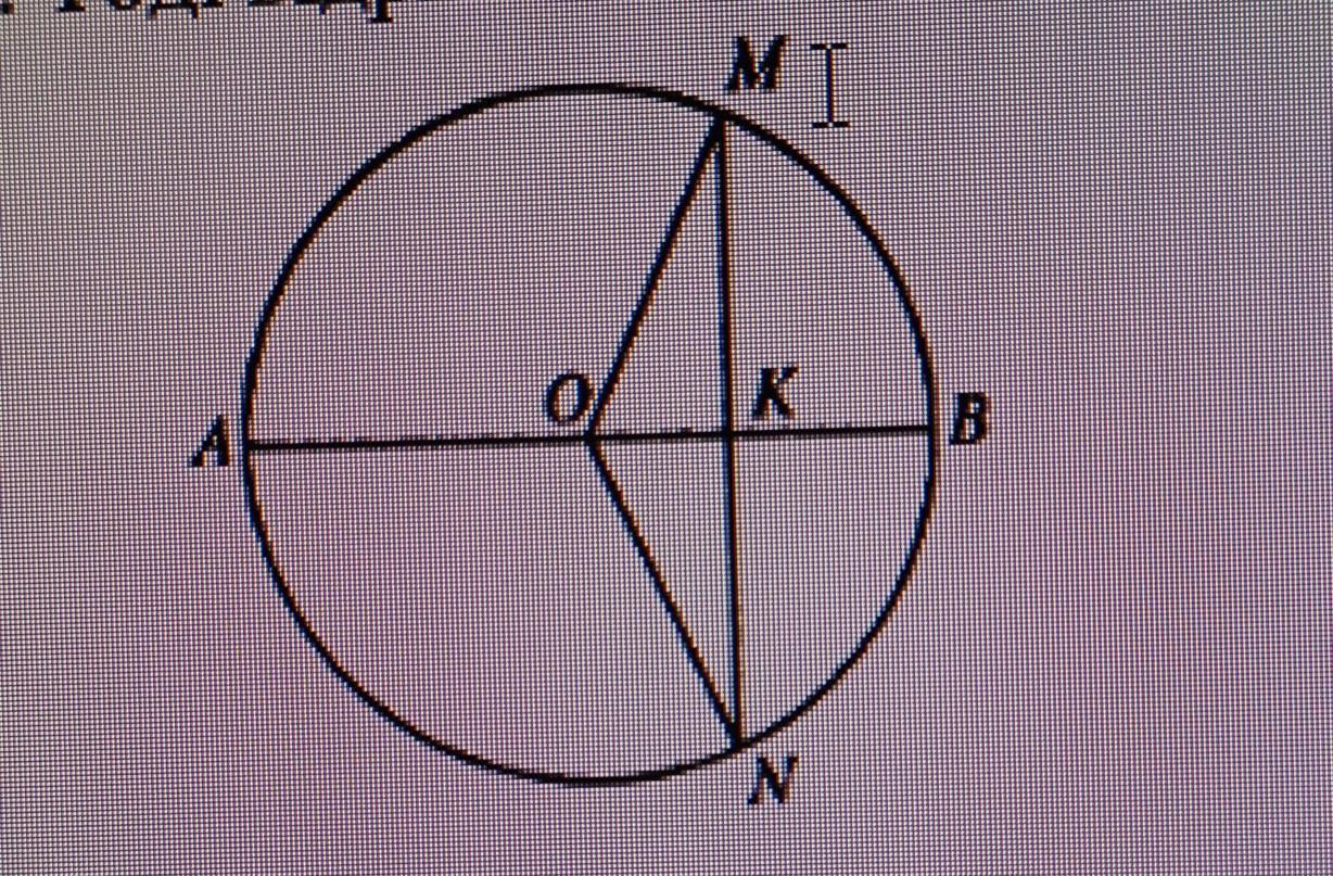На малюнку діаметр AB є перпендикуляром до хорди MN, а KM=4см. Тоді відрізок MN=...