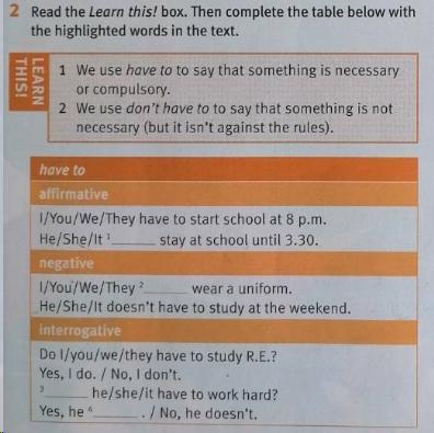 1. Has to 2. Don't have to 3. Does 4. Does