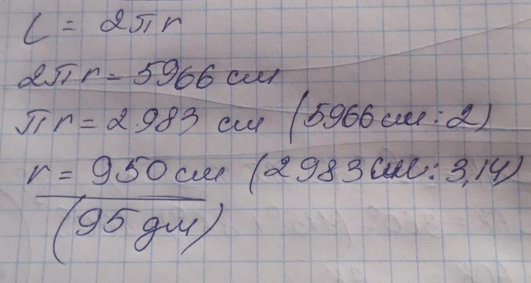 Длина окружности равна 59,66 дм. Найдите