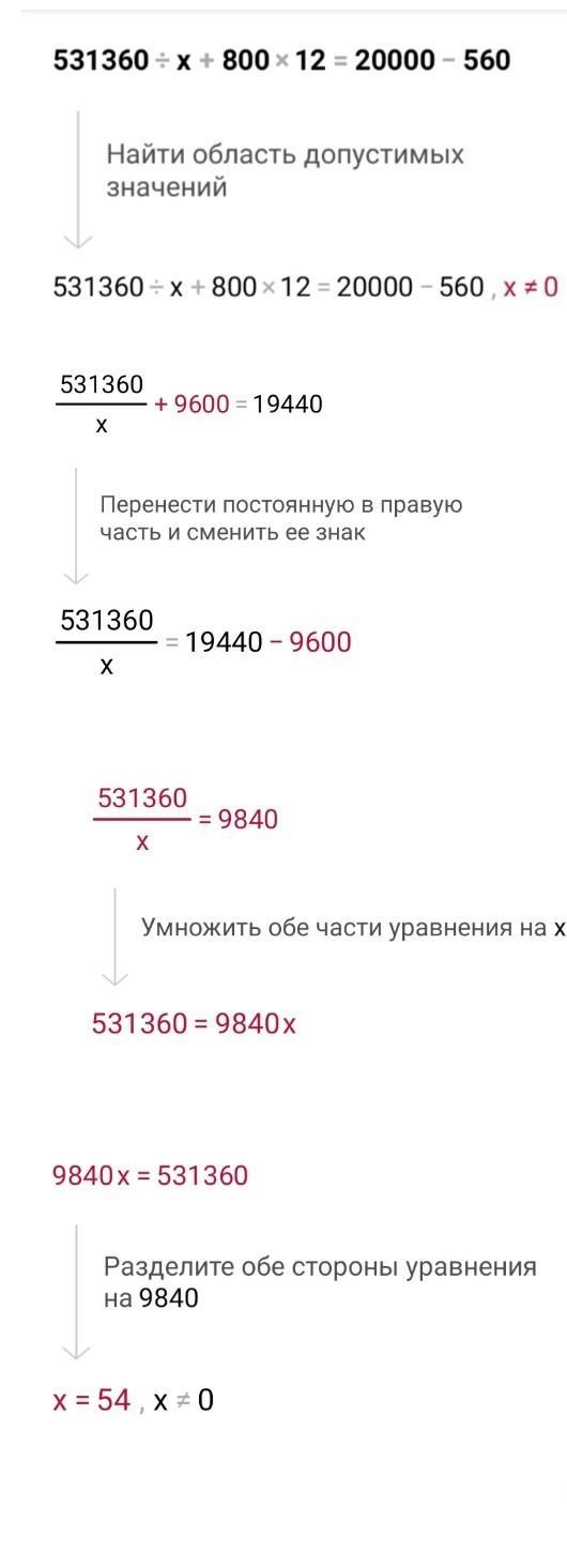 531360:х+800×12=19 440