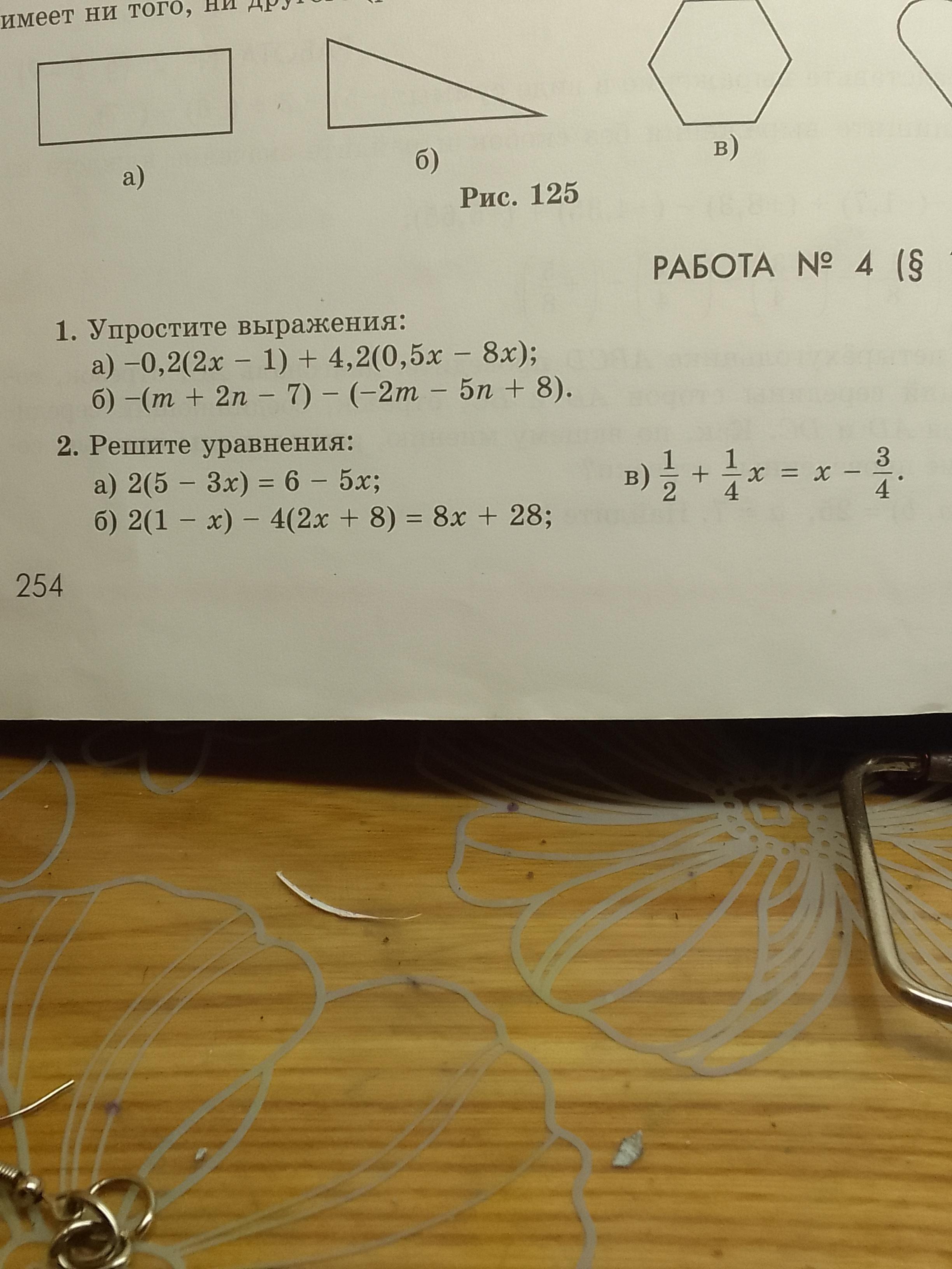 а) - 0,2(2х-1)+4,2(0,5-8х)= - 0,4+0,2+4,2×(-7,5х)=-0,4х + 0,2 - 31, 5х = -39х + 0,2
