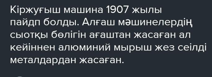 Мәтінді (қажет болса ғаламтор материалдарын пайдаланып кестені толтырыңдар, қазіргі тұрмыстық техникалармен салыстырыңдар. Сұрақтар Кіржуғыш мәшине Тоңазытқыш | Шаңсорғыш Қашан пайда болды? Қалай пайда болды? Кім ойлап тапты?